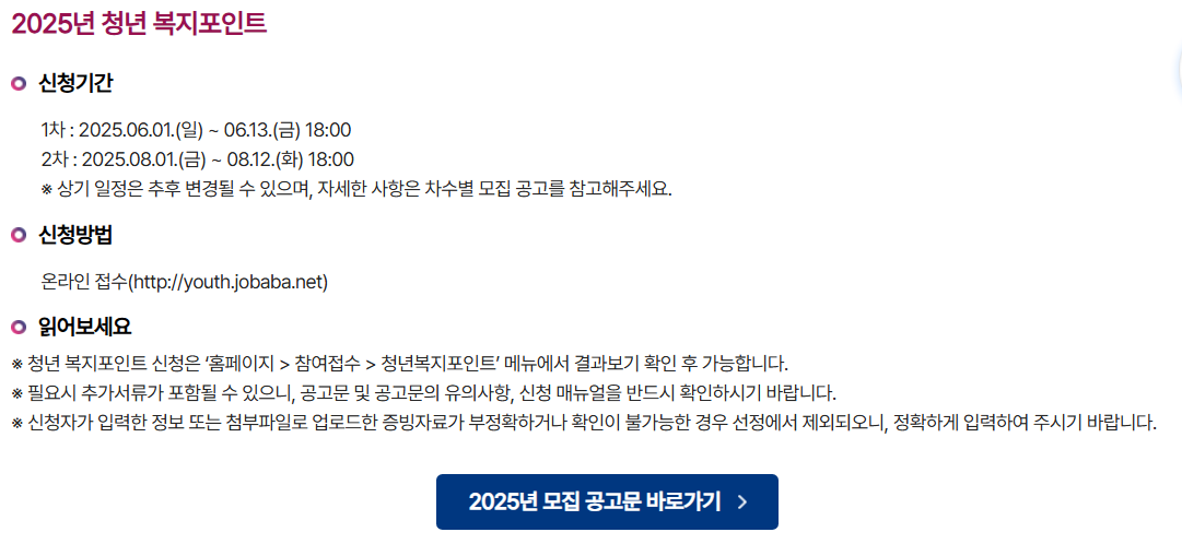 🗓️ 2025년 청년복지포인트 신청기간 안내